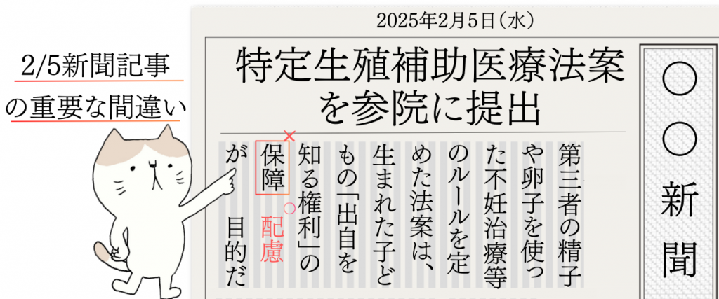 一方で、特定生殖補助医療法案の制度はこれらのいずれにも該当しません。